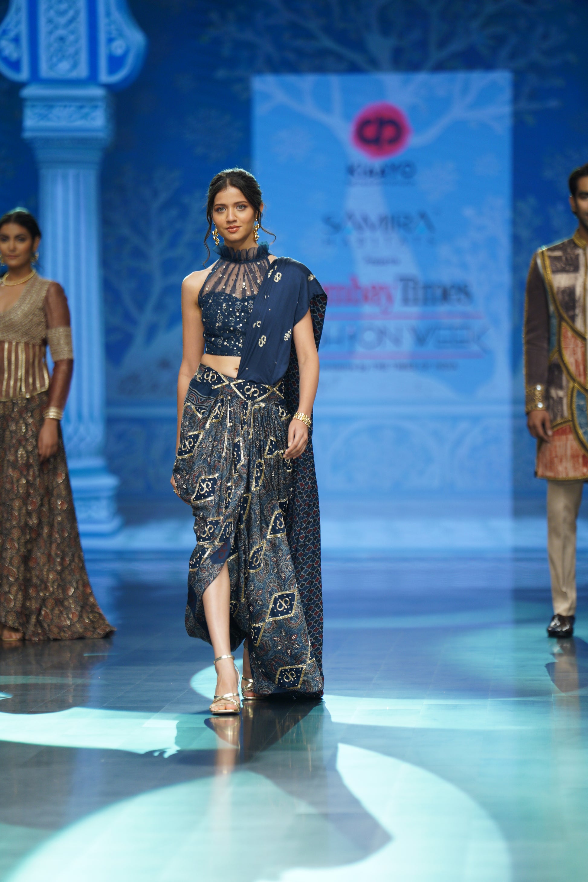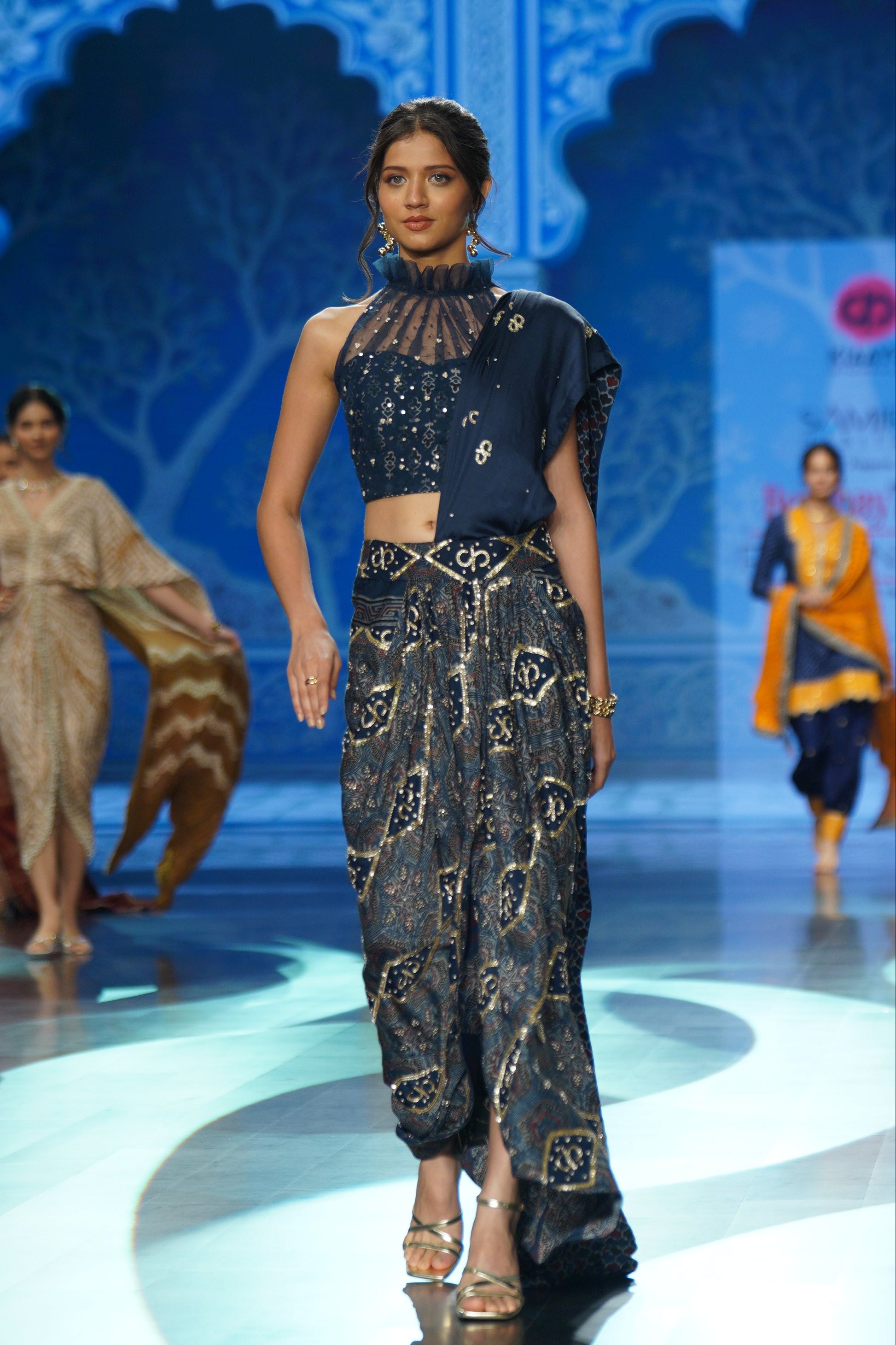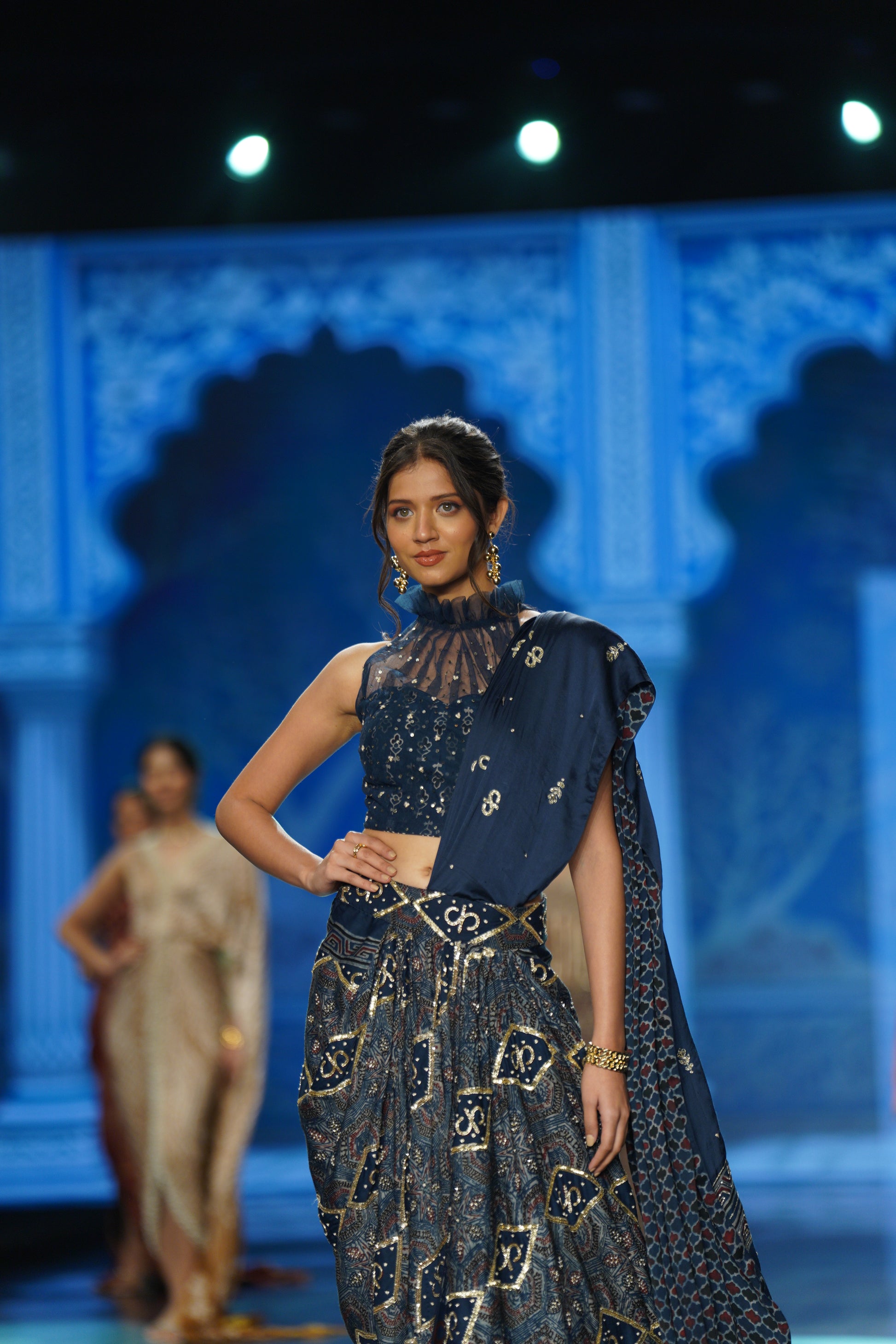 This elegant saree, paired with a modal Ajrakh blouse accented with net detailing, brings together heritage craft and modern styling. Crafted in soft modal Ajrakh, the saree offers a graceful drape with a timeless printed finish.