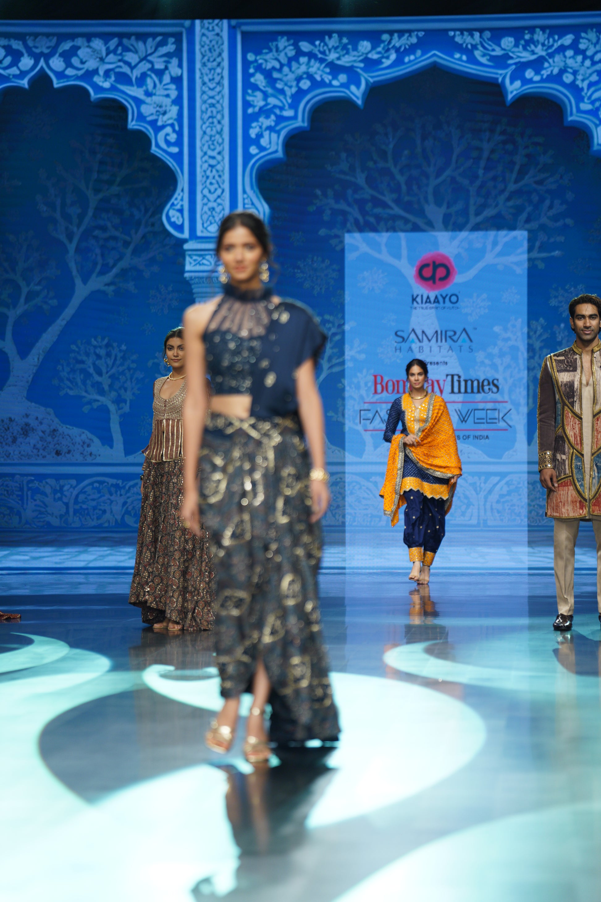 Delicate Pitta work, enhanced with fine Aari embroidery, adds texture and subtle shine, elevating the ensemble with handcrafted detail. Every element is thoughtfully finished, reflecting skilled craftsmanship and attention to detail.