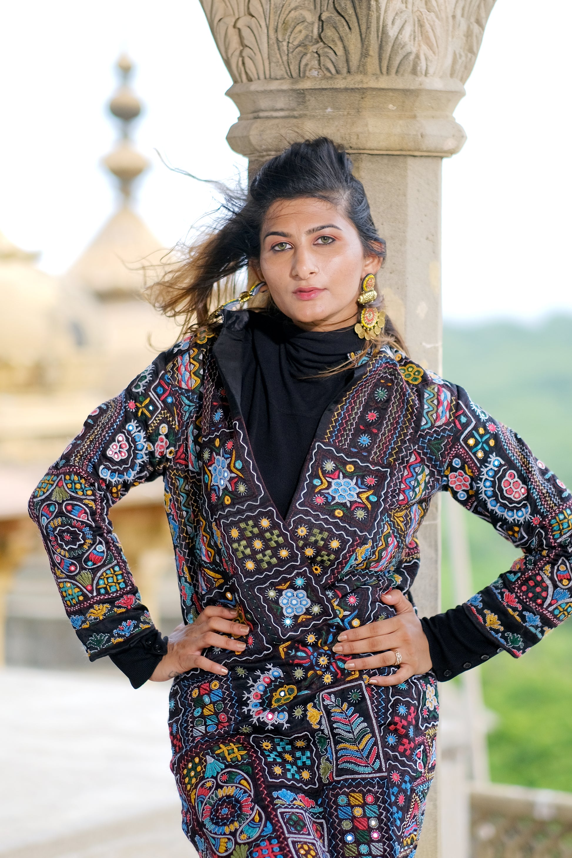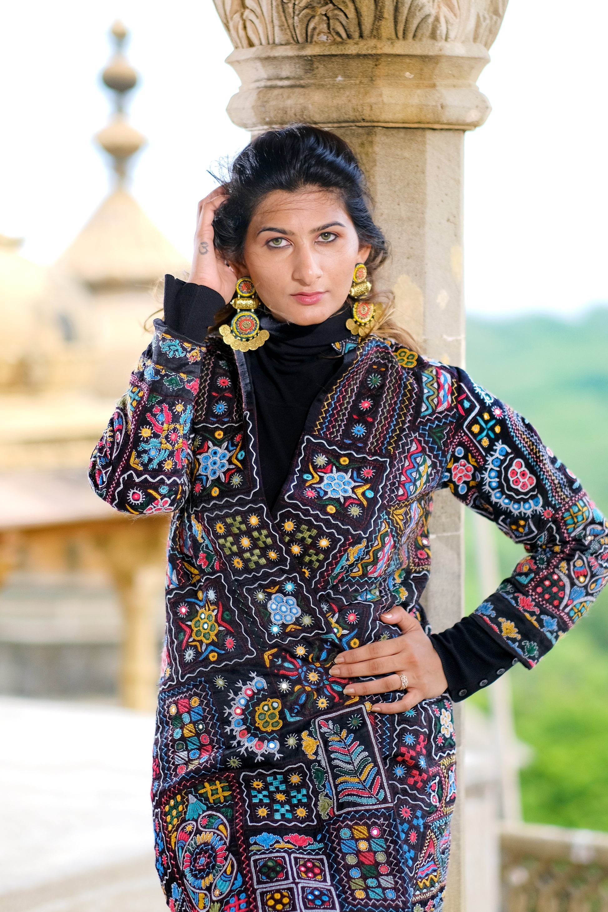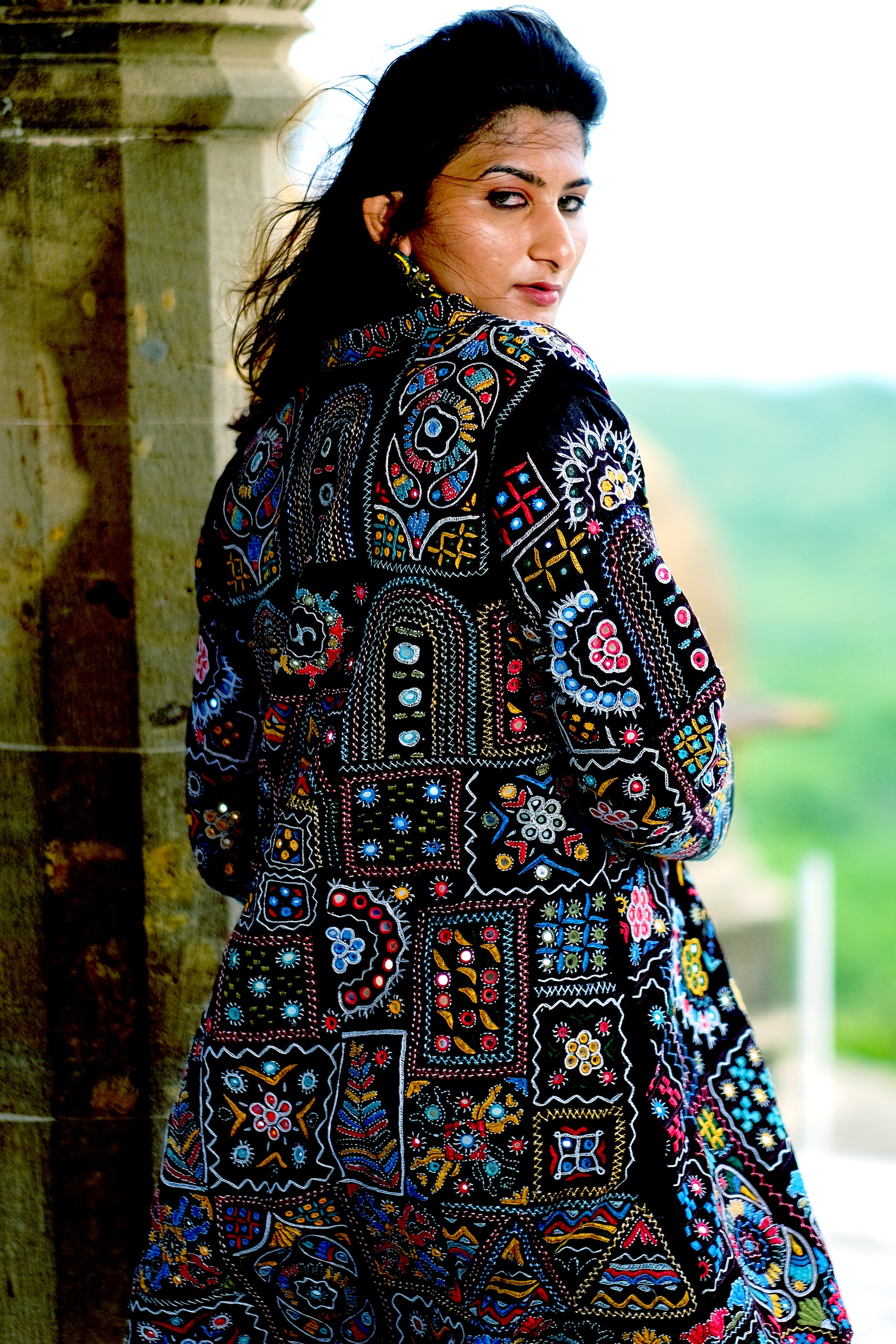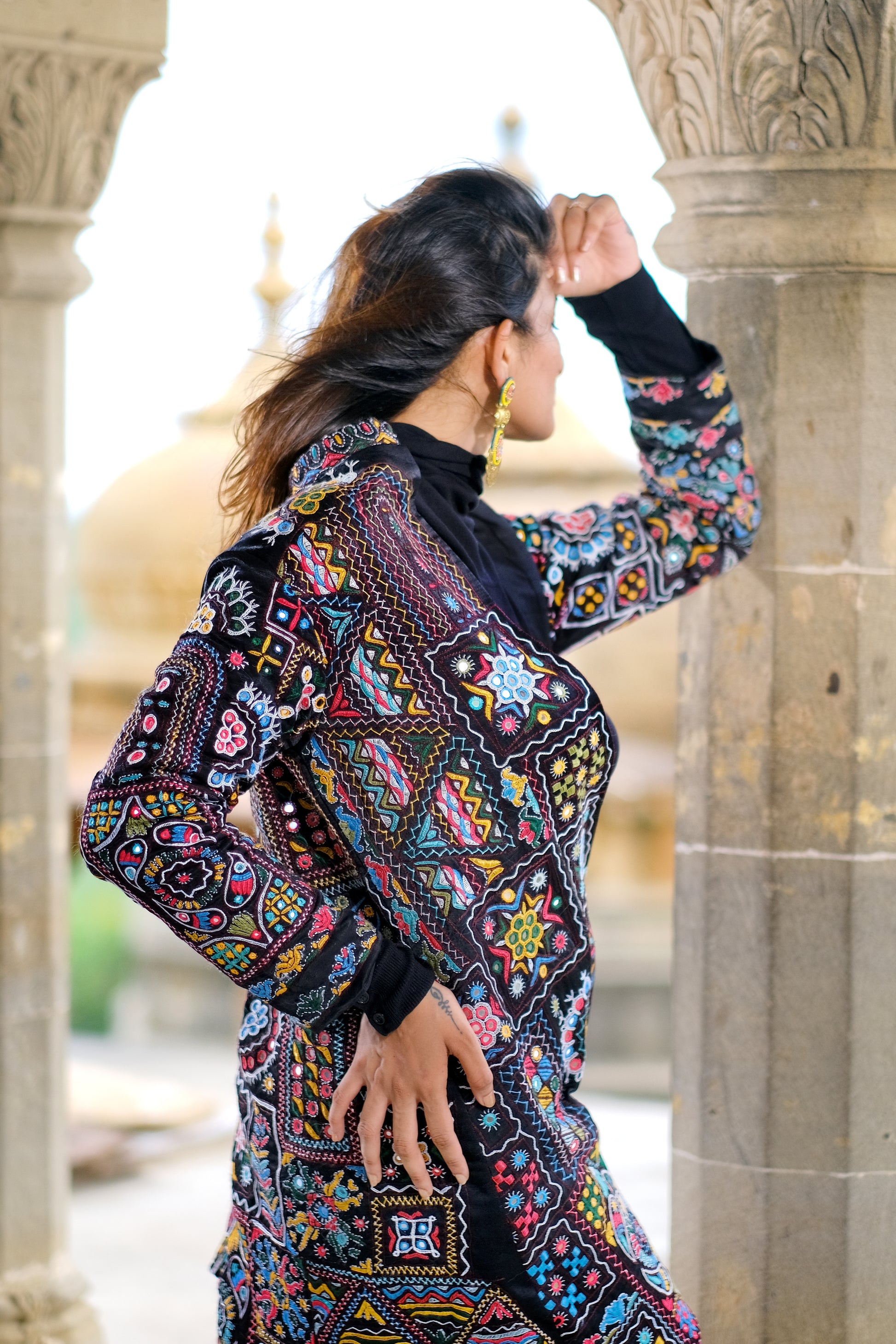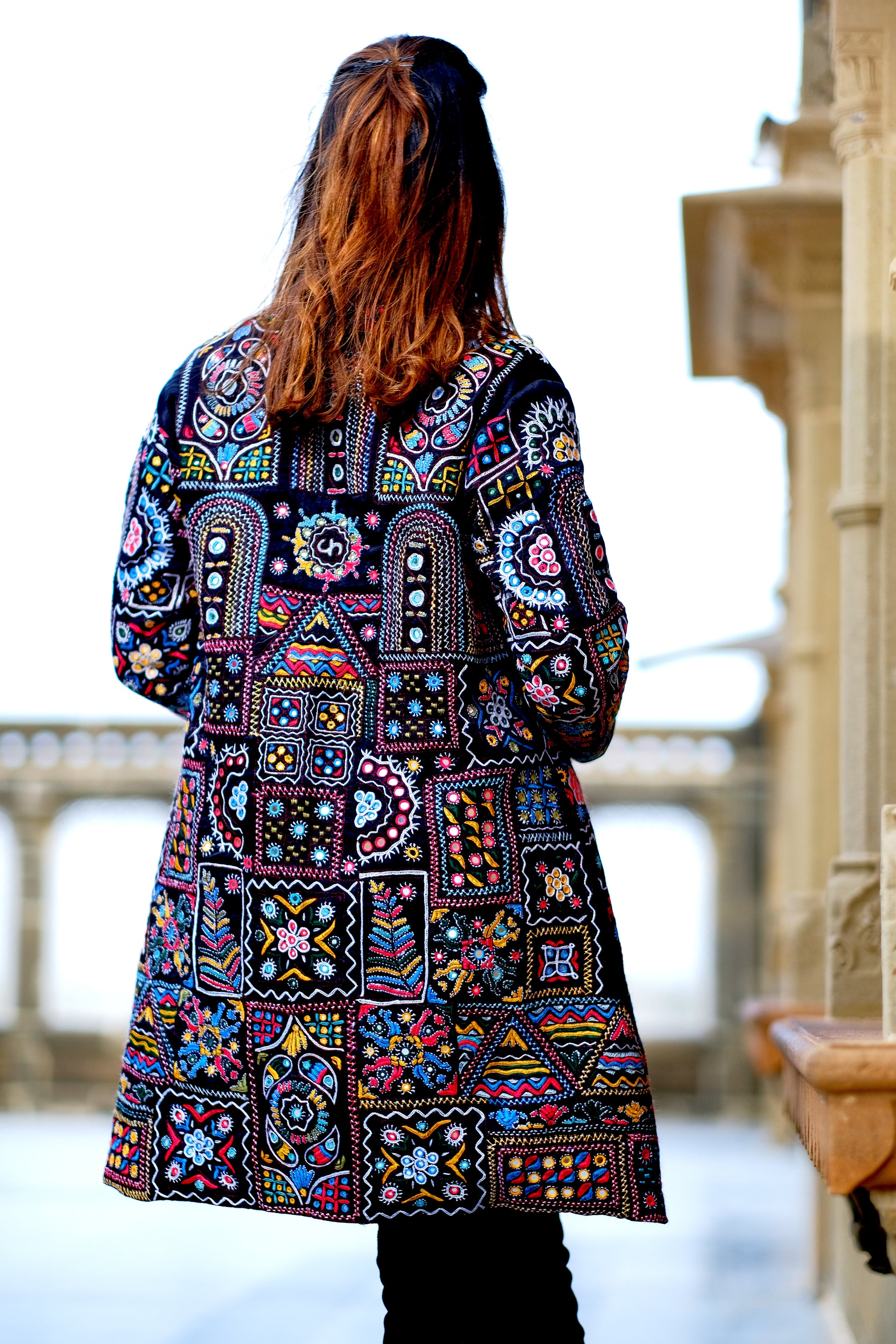 This Kiaayo 'Achija' Jacket is made by a fusion of Five different hand embroidery forms of Kutch and it's a must have garment in your wardrobe. A classic piece of art that can also be passed on to generations.