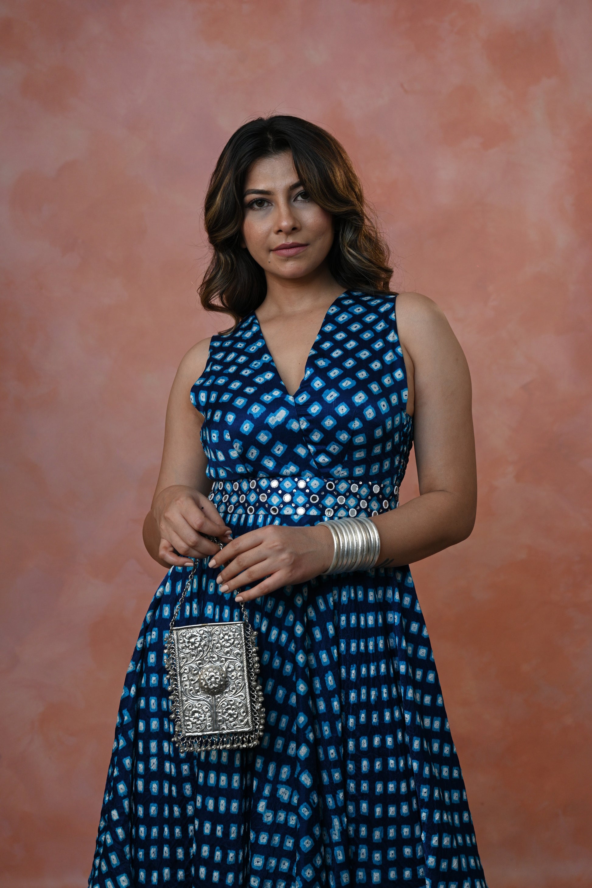 Nyhla A perfect blend of elegance and tradition. Crafted from soft modal silk, its flattering V-neck and intricate double-dot Bandhni detailing celebrate artisanal craftsmanship. The detachable belt allows versatile styling, while delicate strings on the back add a touch of flair. Whether for casual outings or special occasions, Nylah offers timeless comfort and sophistication.