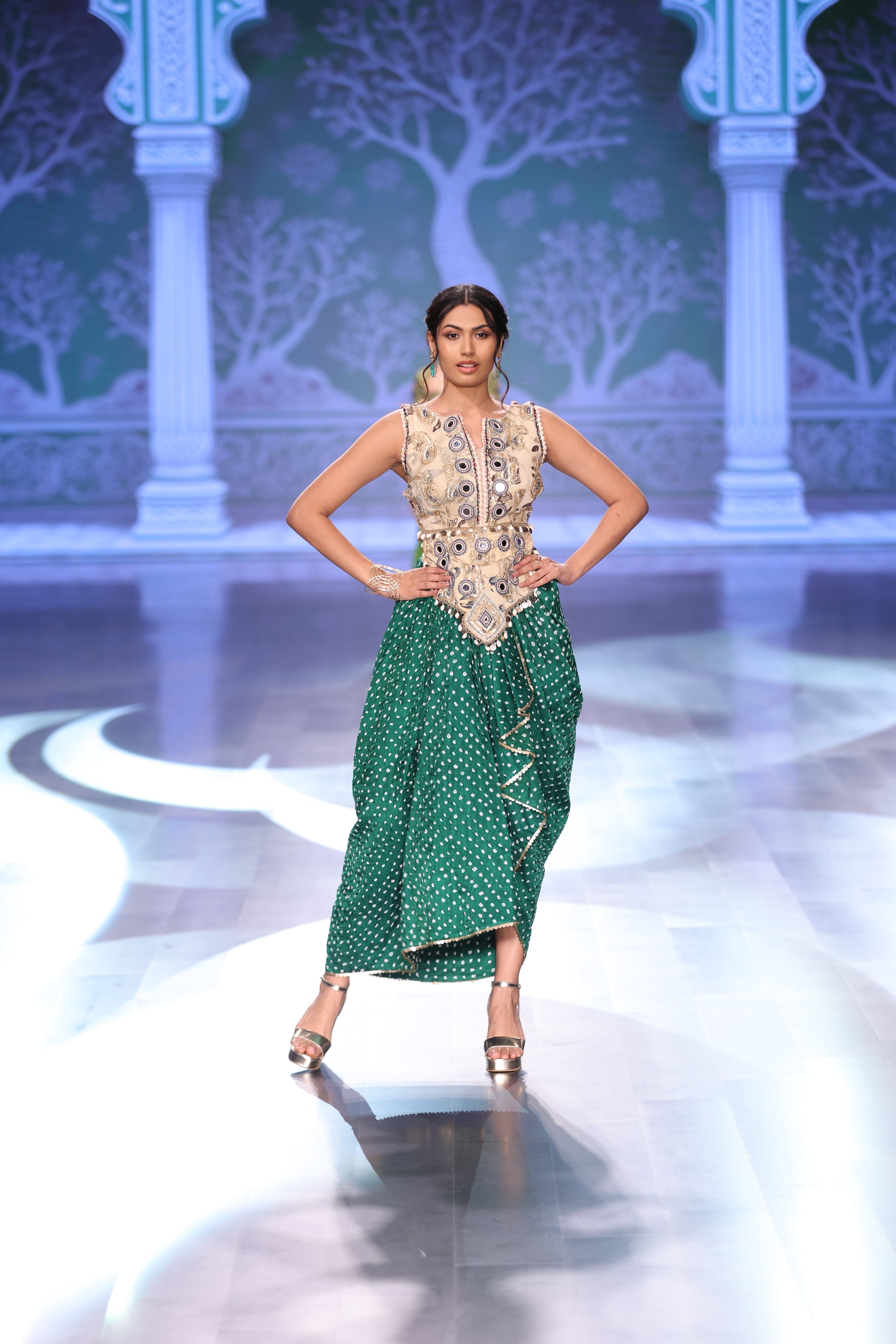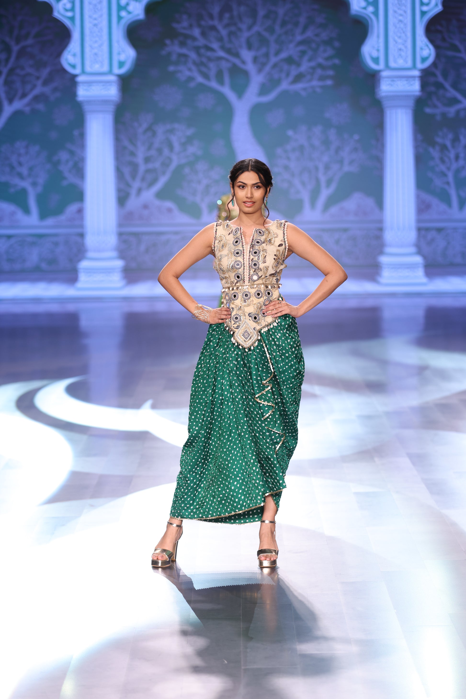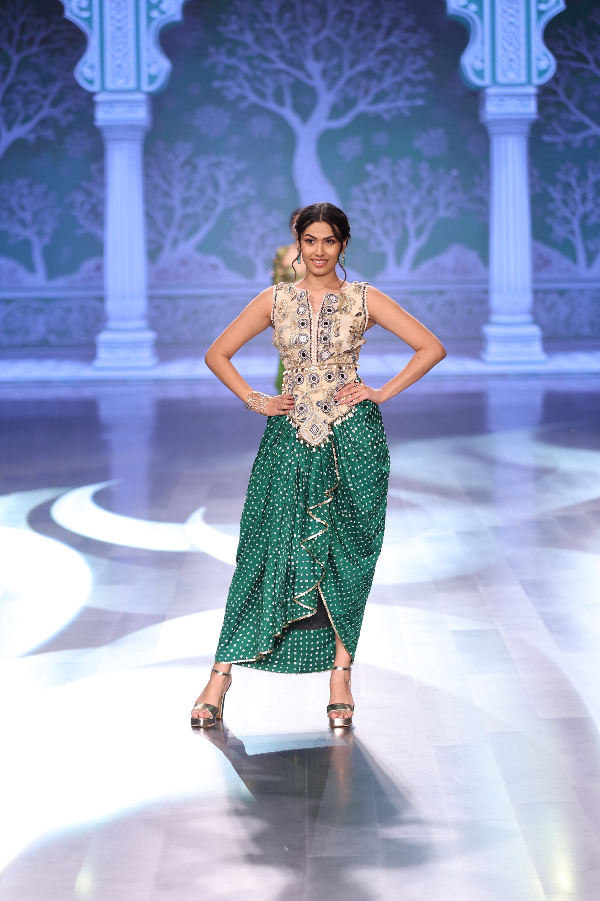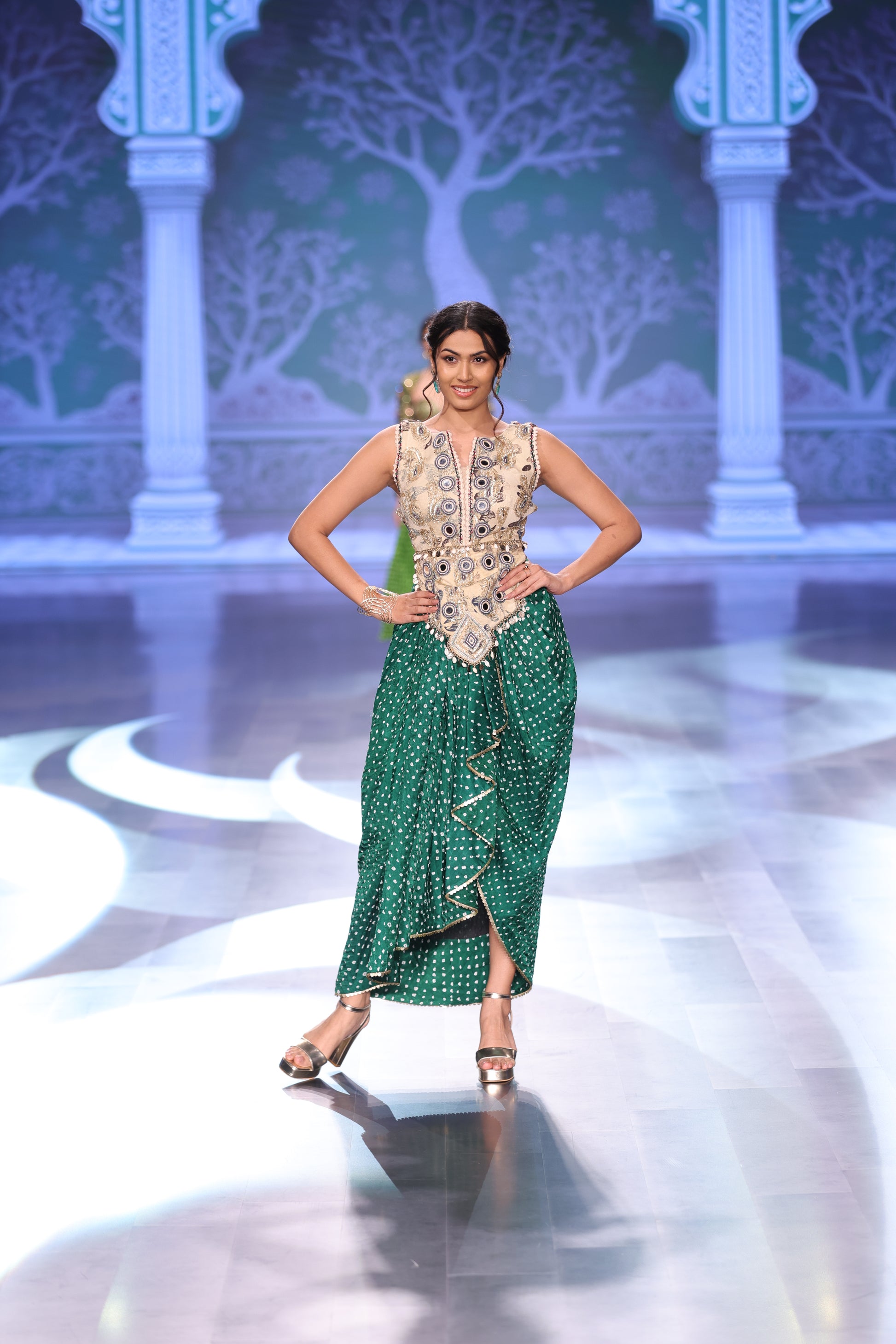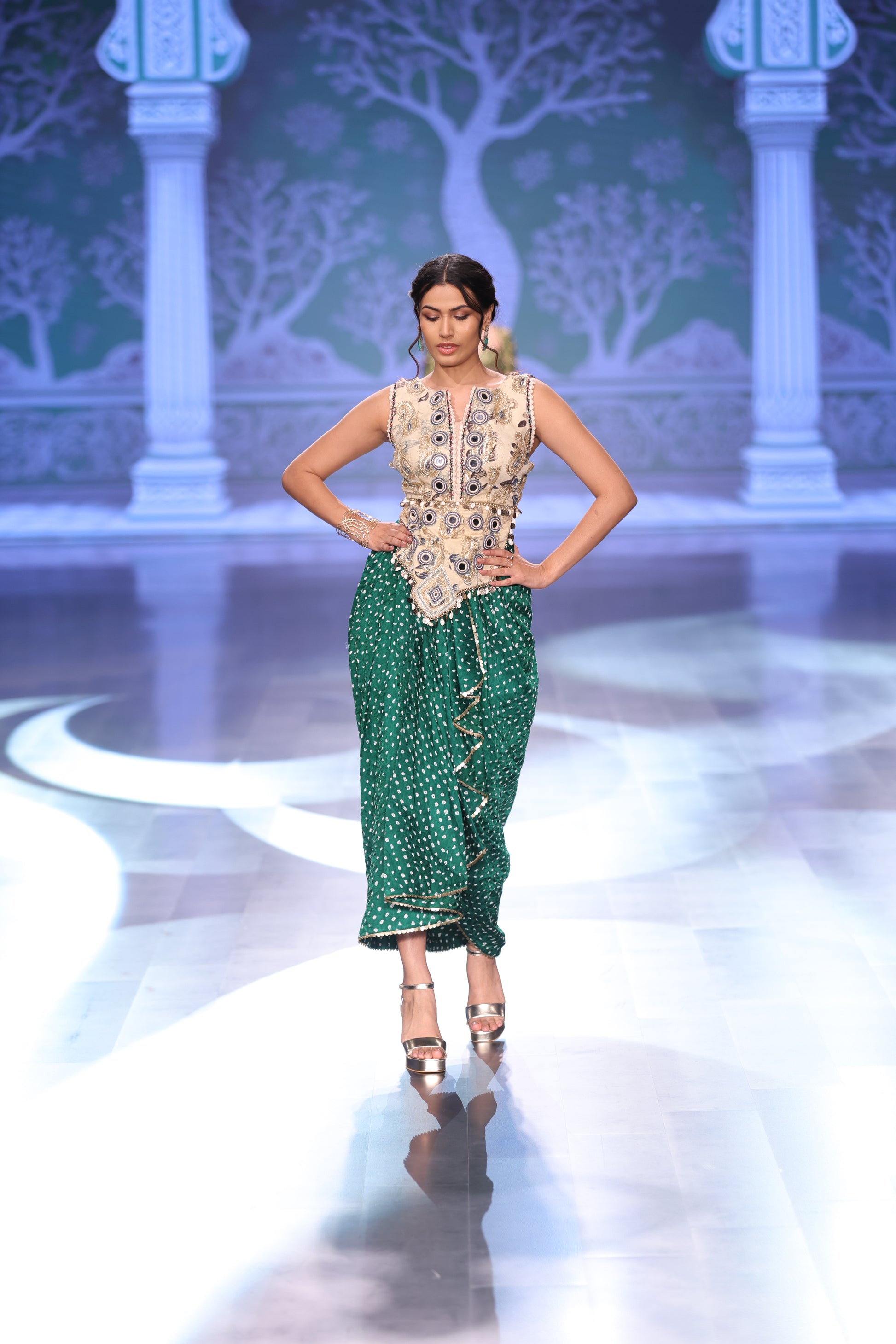 This boho-inspired top and skirt set brings together two traditional craft techniques in a modern silhouette. The top is crafted in soft Ajrakh modal fabric, known for its rich prints and comfortable feel. The skirt is made in Bandhani modal, featuring delicate tie-dye patterns that add movement and character.