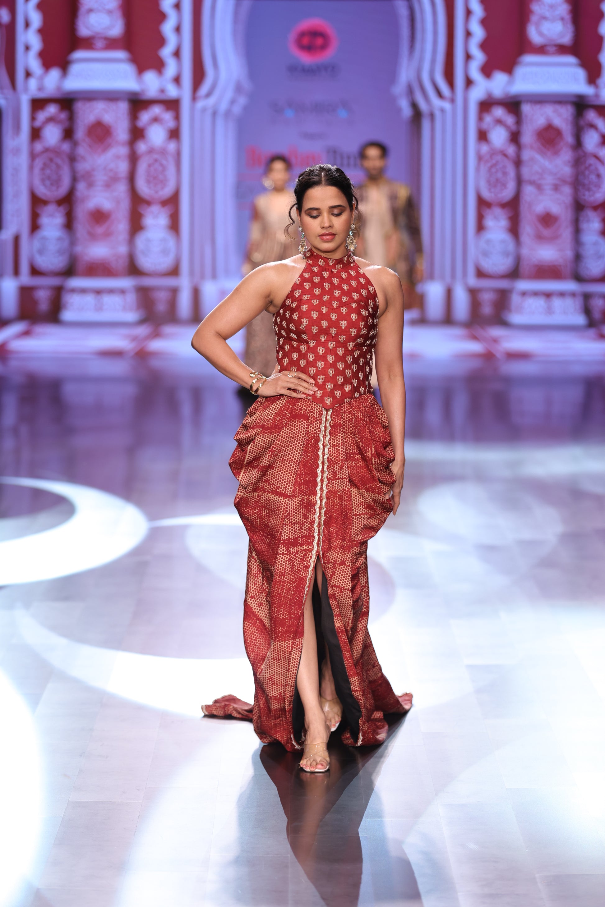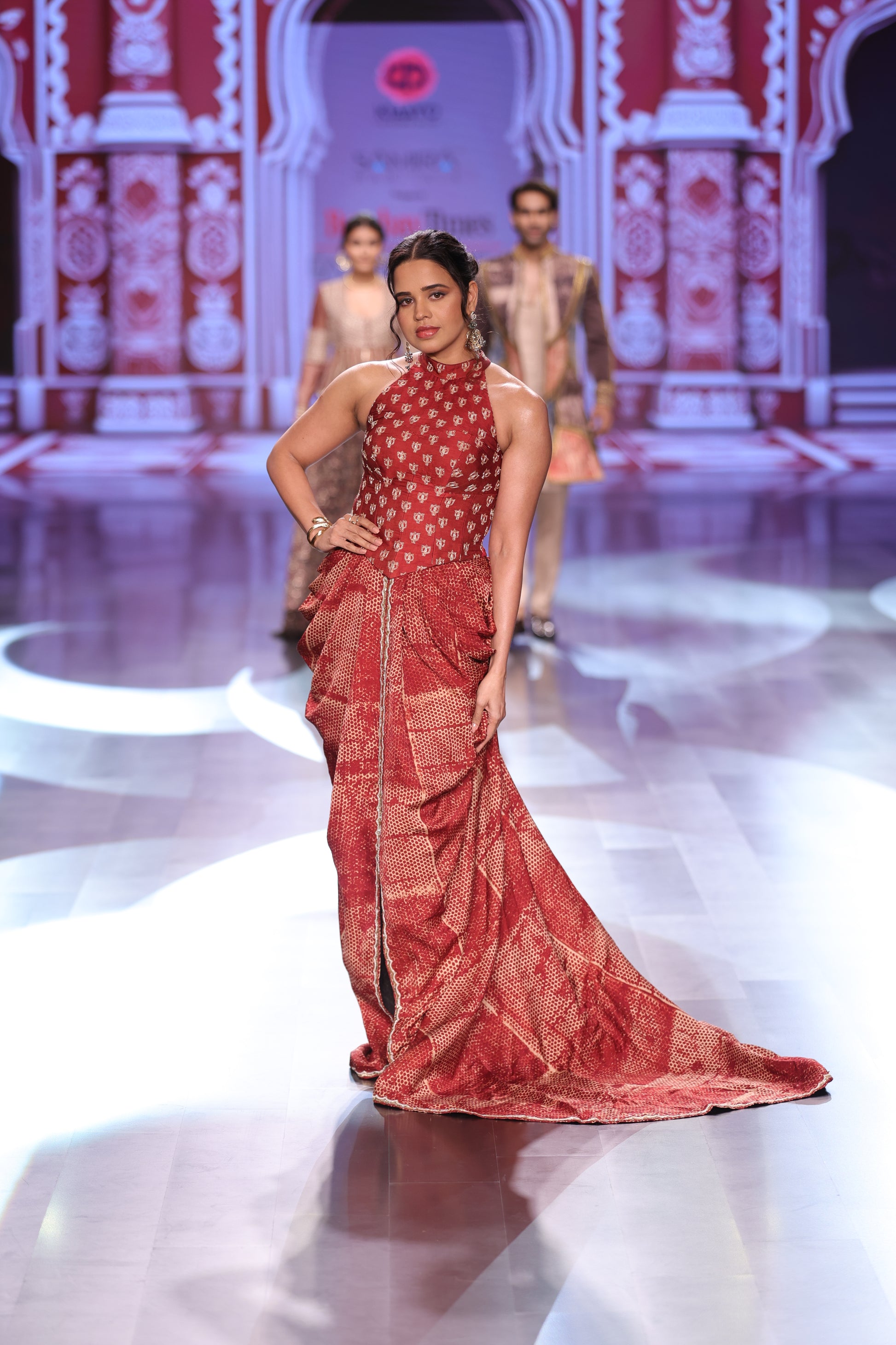 This refined top and skirt set is crafted in Ajrakh modal, offering a soft drape and a timeless printed finish. The coordinated design creates a balanced and elegant silhouette.