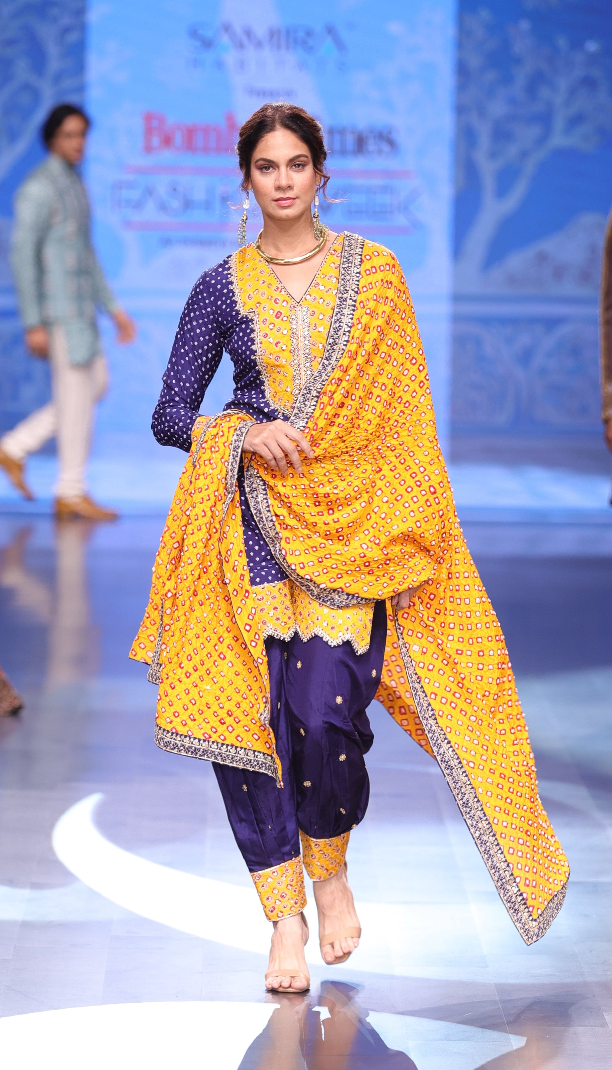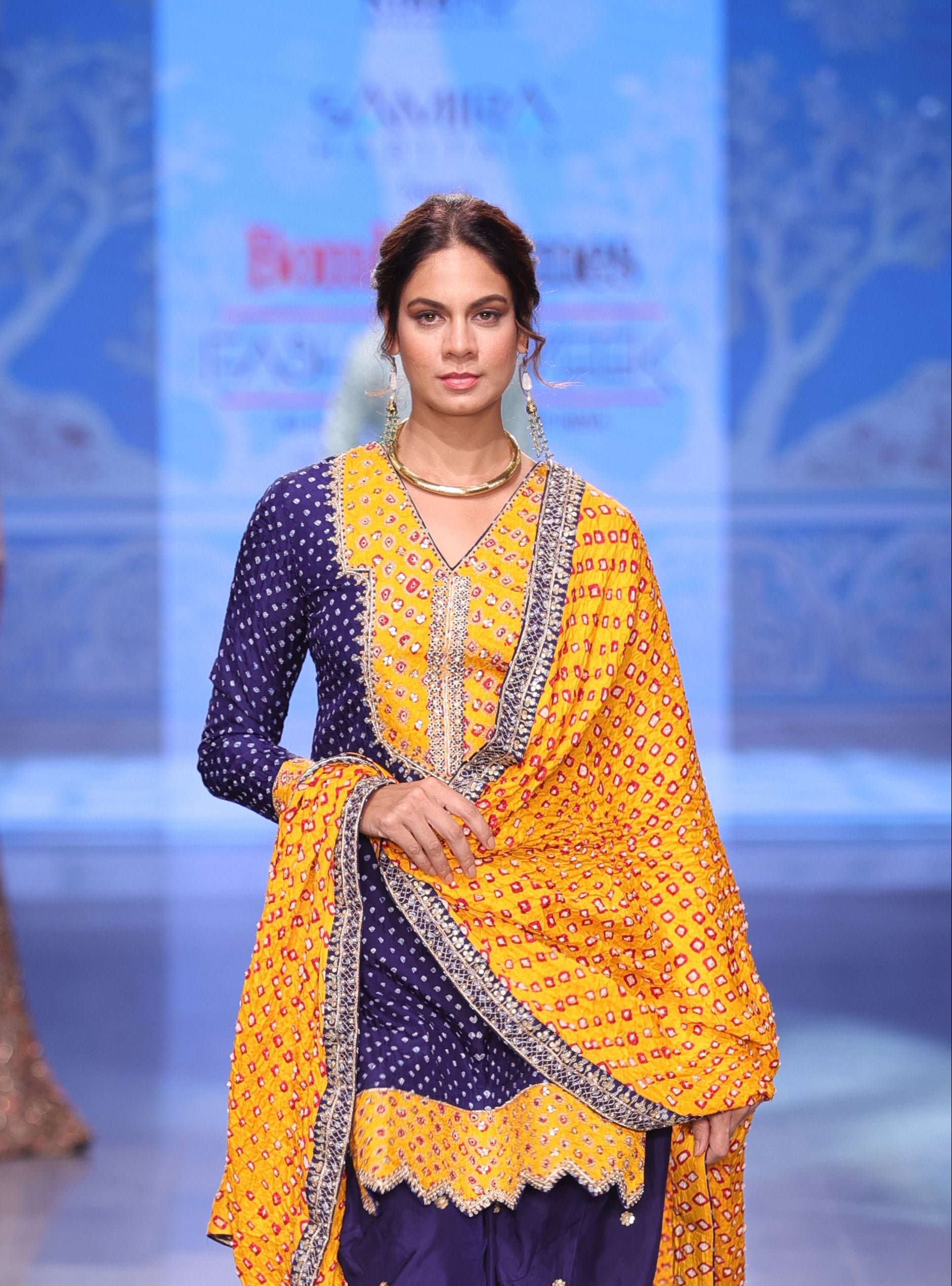 The dupatta, also in Gajji Bandhani, completes the look with a coordinated and refined finish. Delicate Aari embroidery, enhanced with intricate Zardozi work, adds texture and subtle shine across the ensemble.